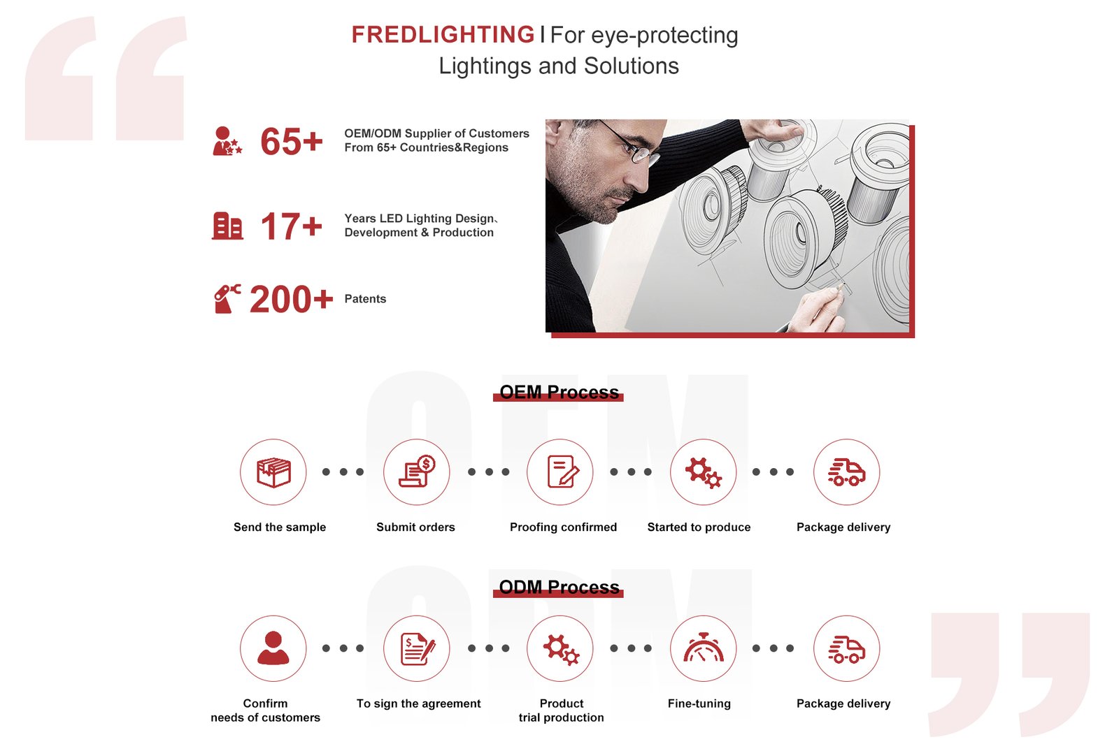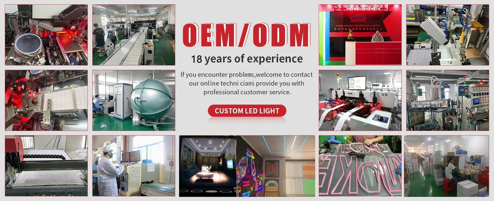 Fredlighting Technology Limited in Shenzhen was founded in 2008. It is committed to delivering LED (Light Emitting Diode) leading technology, high quality LED lighting and associated products, all of which meet the highest possible technical standards for user around the world. To achieve this, our company relies on personal commitment, experiences and skills of every member in the team working under an effective managemental system which satisfies different kinds of product requirements.Fredlighting Technology Limited, with 3500 square meters of factory base and R&D centers, has always been and still will be a service-oriented leader in LED Strips, LED Light Bar, Neon Sign, Outdoor lamp,Led Downlight,LED Tube, LED Spotlights, LED Bulb, LED Panel Light, LED Modules, LED Ceiling Light, LED Wall Washer, G4 LED etc. All of these are achived by absorbing advantageous points from the competitor, advanced technologies and top-rank talents in LED field.With perfect quality, fairly competitive price, we promptly gain a high reputation all over the word, with strong R&D power, which made us one of the largest LED lighting product providers. Glorifying people's views and creat quality life is always our Fredlighting person’s mission ! Meanwhile, we firmly believe that you will use your single-eyed foresight and sagacity to establish business relationship and collaborate hand in hand with us in a competitive valued chain and grow up to be a participant in this line. Look forward to your participation.